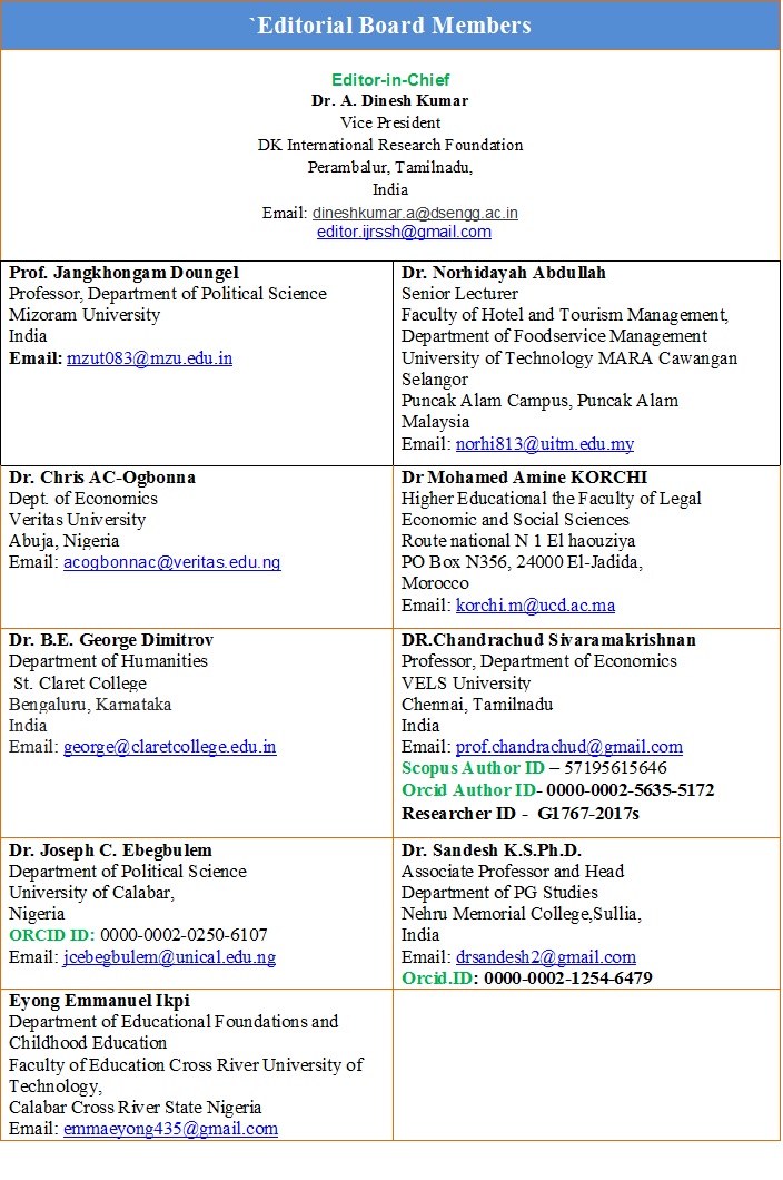 International Journal of Research in Social Science and Humanities (IJRSS) ISSN:2582-6220, DOI: 10.47505/IJRSS
